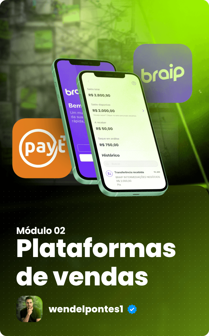 Sou Wendel Pontes, casado e pai de uma menina incrível de 10 anos. Trabalhei quase 20 anos no CLT, acreditando que aquela era a única realidade possível… até descobrir que existia um caminho muito mais poderoso: vender produtos físicos e digitais na internet.